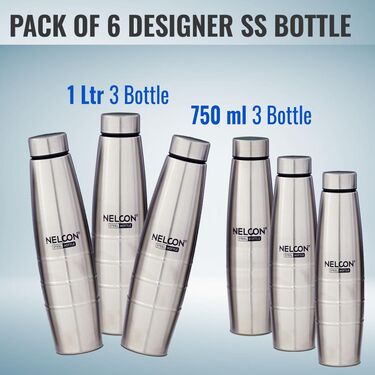 Pack of 6 Designer Stainless Steel Bottles (6B2)